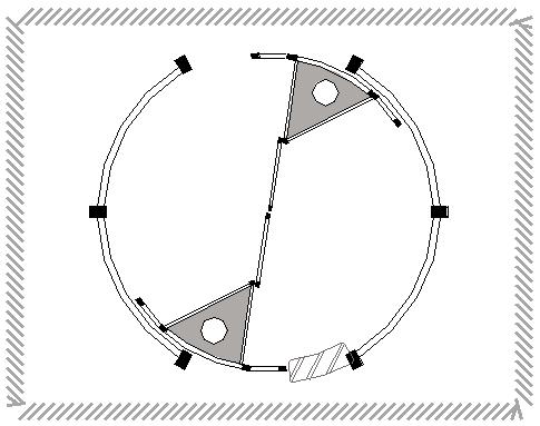 門在夜間關(guān)閉時,兩弧形旋轉(zhuǎn)展箱將出入口